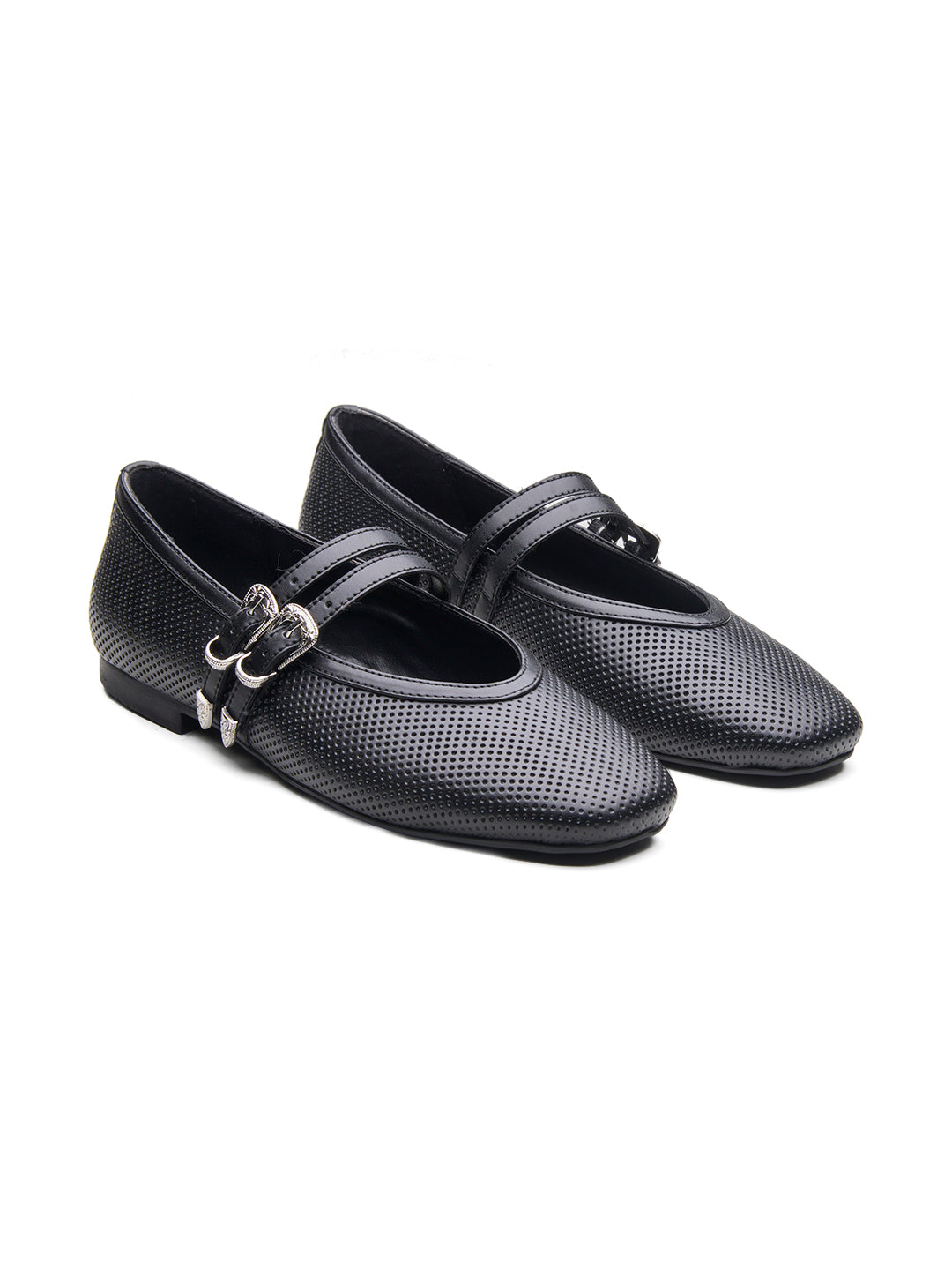 Elevate your footwear collection with these elegant Women's Textured Mary Jane Flats. Featuring a rich, textured finish and dual buckle straps for added charm, these flats blend classic design with a modern twist. The soft, cushioned footbed ensures all-day comfort, while the sleek silhouette and subtle shine make them perfect for work, casual outings, or special occasions. A versatile choice for the woman who values both style and comfort.